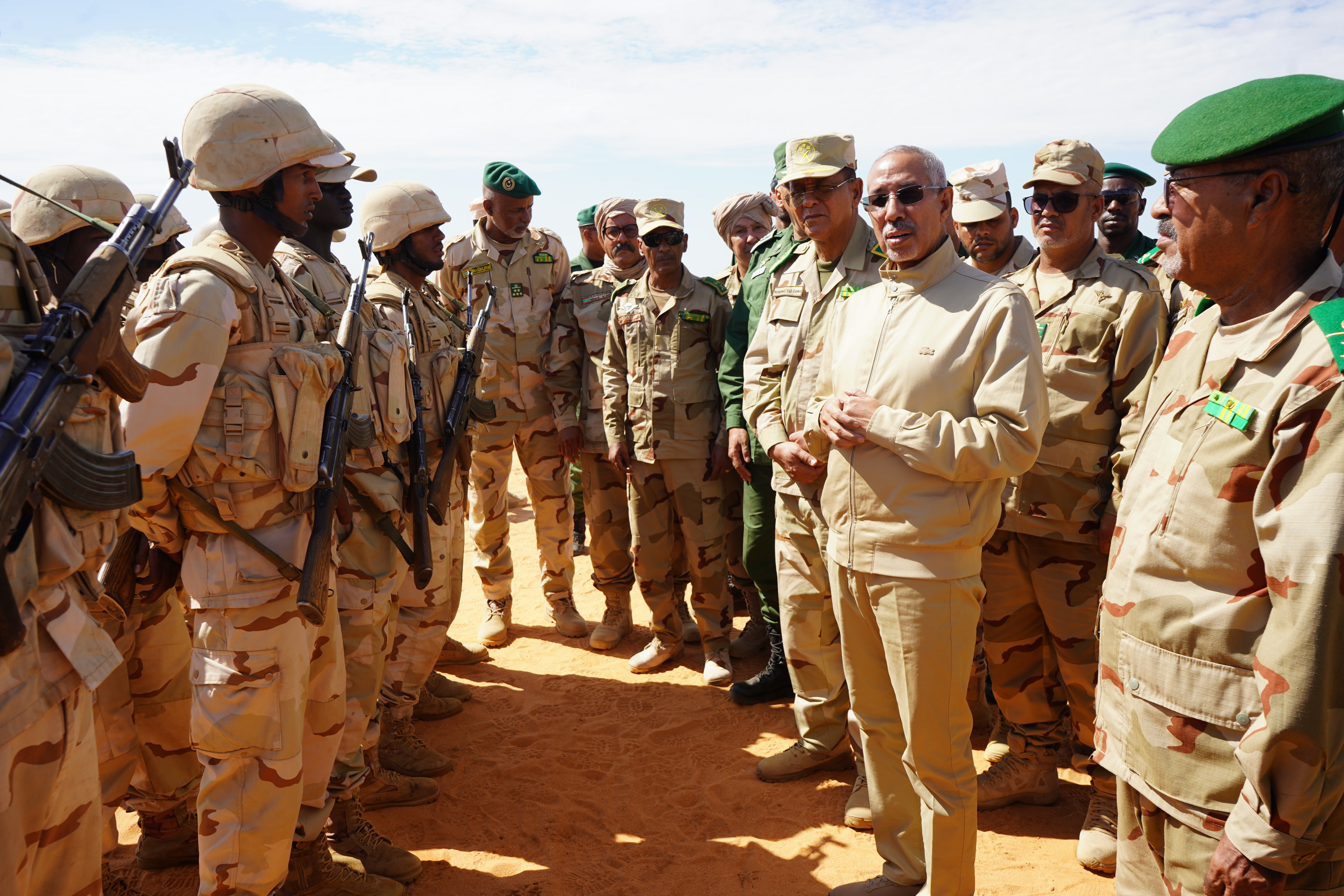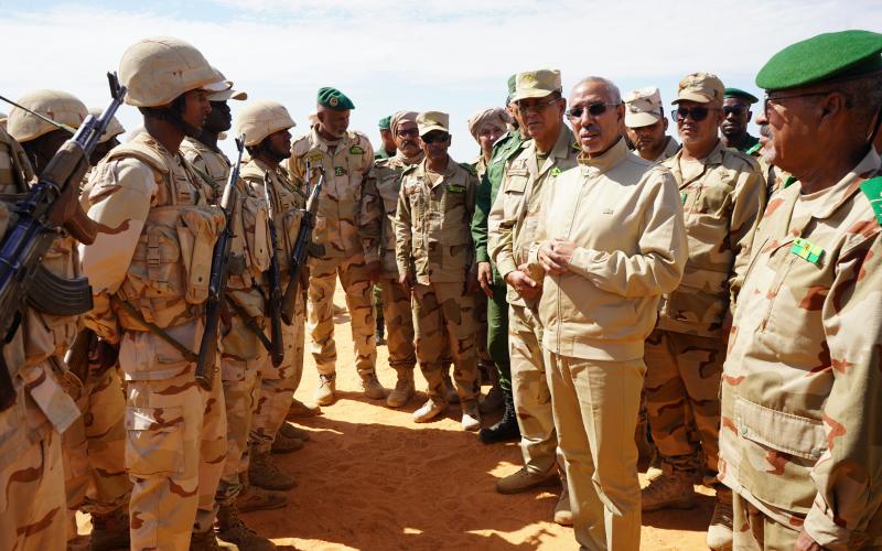 Le Ministre de la Défense supervise des manœuvres militaires lors d’une visite au bataillon mauritanien de la Force conjointe du G5 Sahel à Nbeiket Lahouach